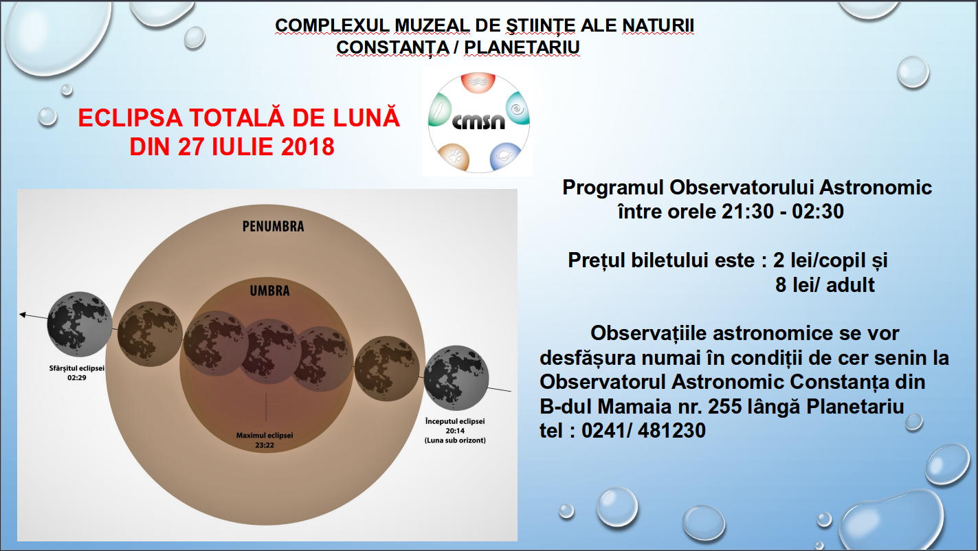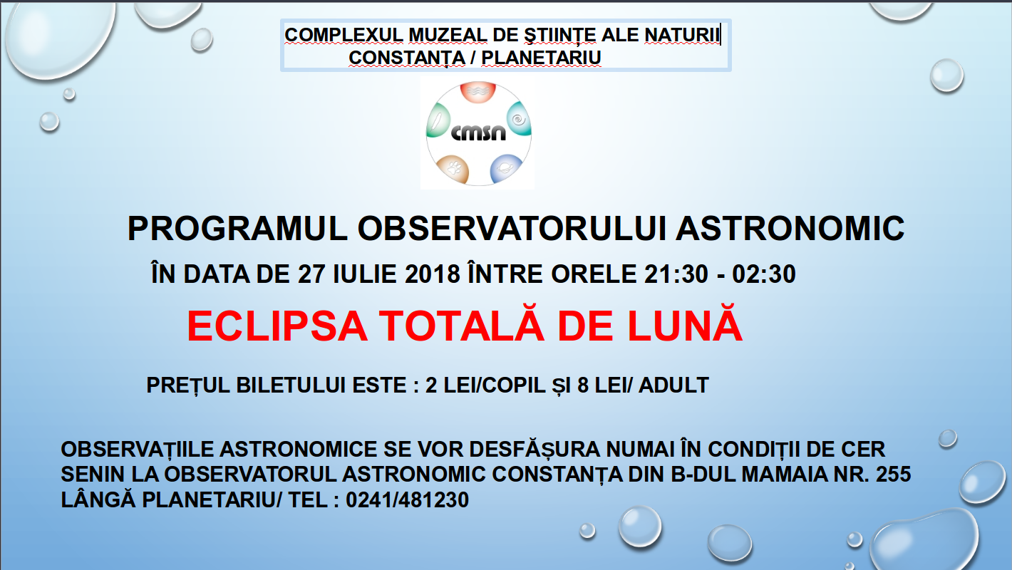 OBSERVAȚIILE ASTRONOMICE SE VOR DESFĂȘURA NUMAI ÎN CONDIȚII DE CER SENIN LA OBSERVATORUL ASTRONOMIC CONSTANȚA DIN B-DUL MAMAIA NR. 255 LÂNGĂ PLANETARIU