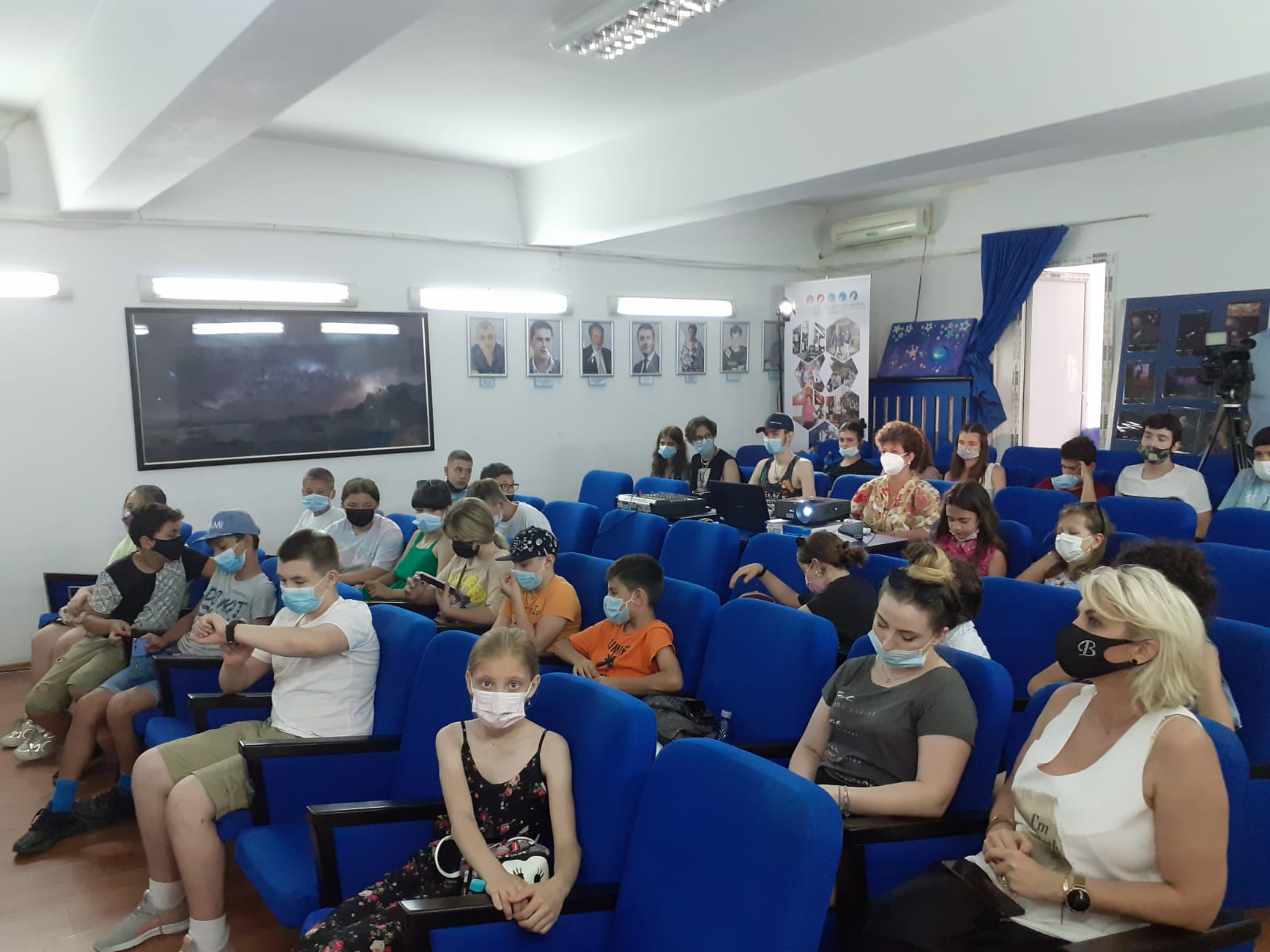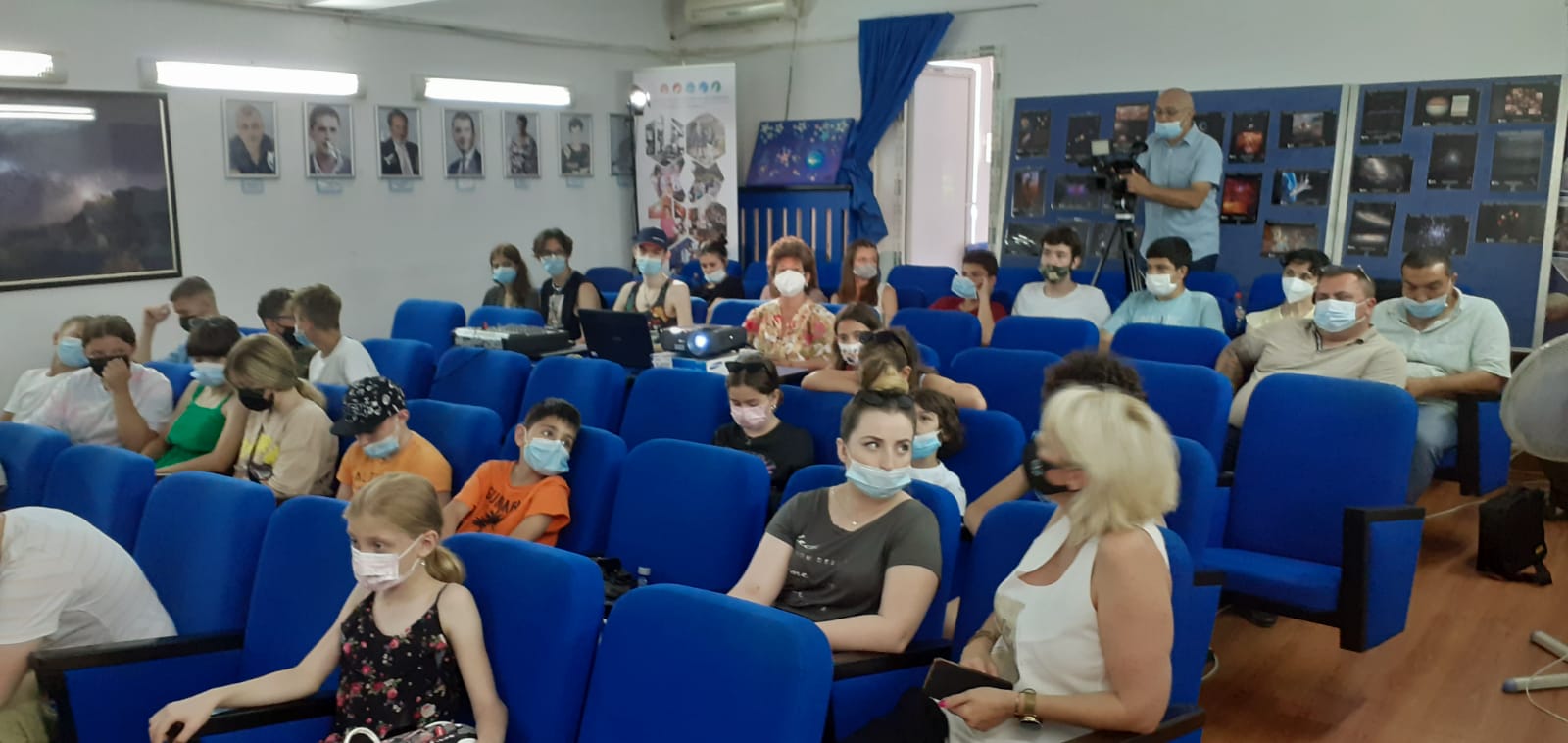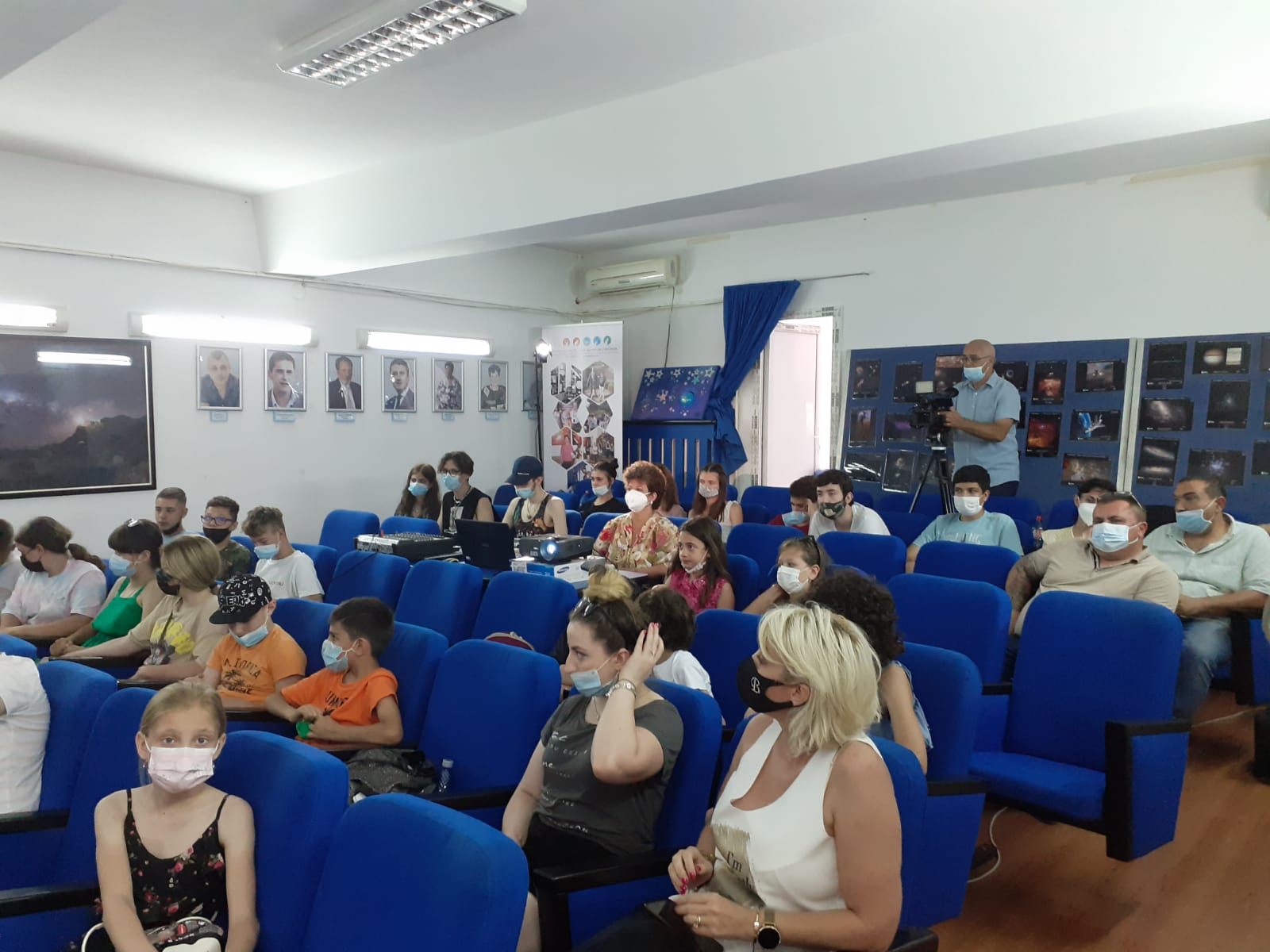 • Demonstrații în Planetariu cu publicul vizitator - durată 20 minute , (prezentarea cerului vizibil actual și a altor corpuri cerești de interes):